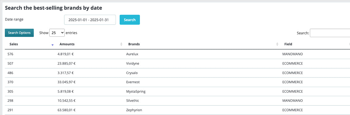 Scopri quali marchi attirano maggiormente i consumatori e generano più vendite. Questo strumento analizza le performance di vendita dei diversi brand disponibili sul tuo ecommerce, offrendoti insights preziosi per strategie di marketing mirate e per rafforzare le partnership con i brand di maggior successo.
