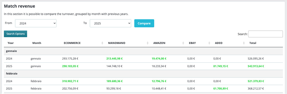 Monitora e confronta il reddito generato sui vari marketplace in cui operi. Questo strumento di analisi ti permette di valutare l'efficacia delle tue strategie di vendita su differenti piattaforme, facilitando decisioni basate su dati per massimizzare i profitti.